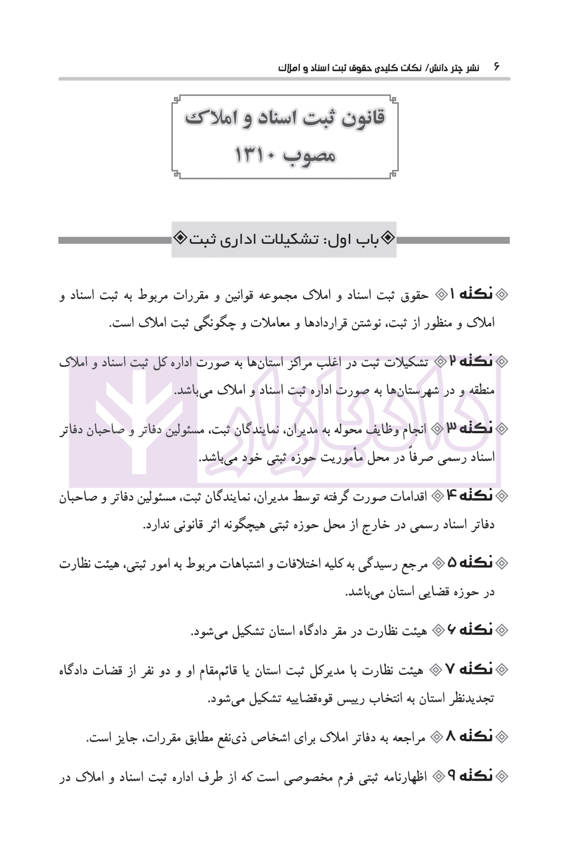معرفی و فهرست کتاب نکات کلیدی حقوق ثبت اسناد و املاک | زنده گل