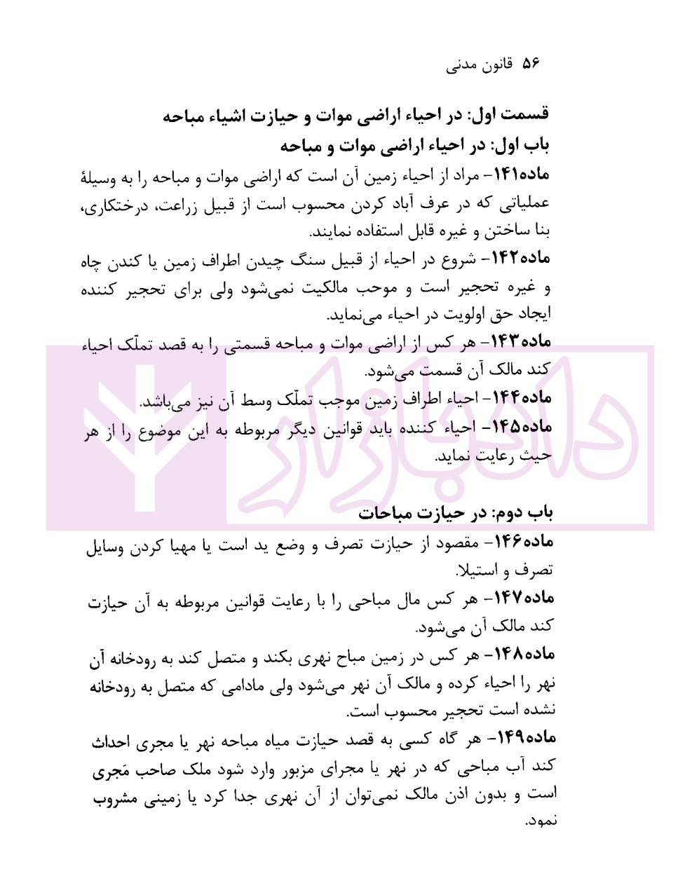 قسمت اول: در احیاء اراضی موات و حیازت اشیاء مباحه