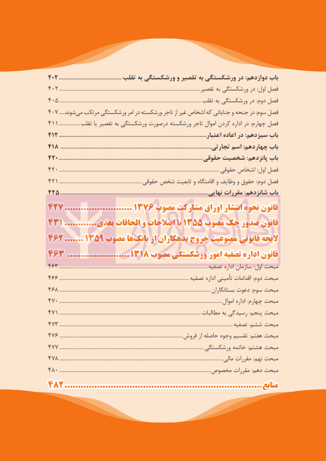 - باب دوازدهم: در ورشکستگی به تقصیر و ورشکستگی به تقلب