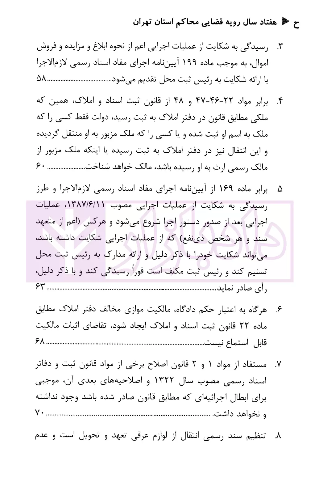 امتیاز و دیدگاه کاربران هفتاد سال رویه قضایی محاکم استان تهران امور ثبتی اسناد و املاک (1331 تا 1401) | دادگستری استان تهران
