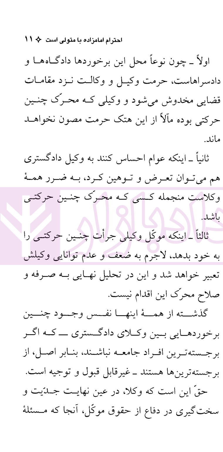 مشخصات و ویژگی کتاب وکیل دادگستری و اخلاق حرفه ای | کشاورز