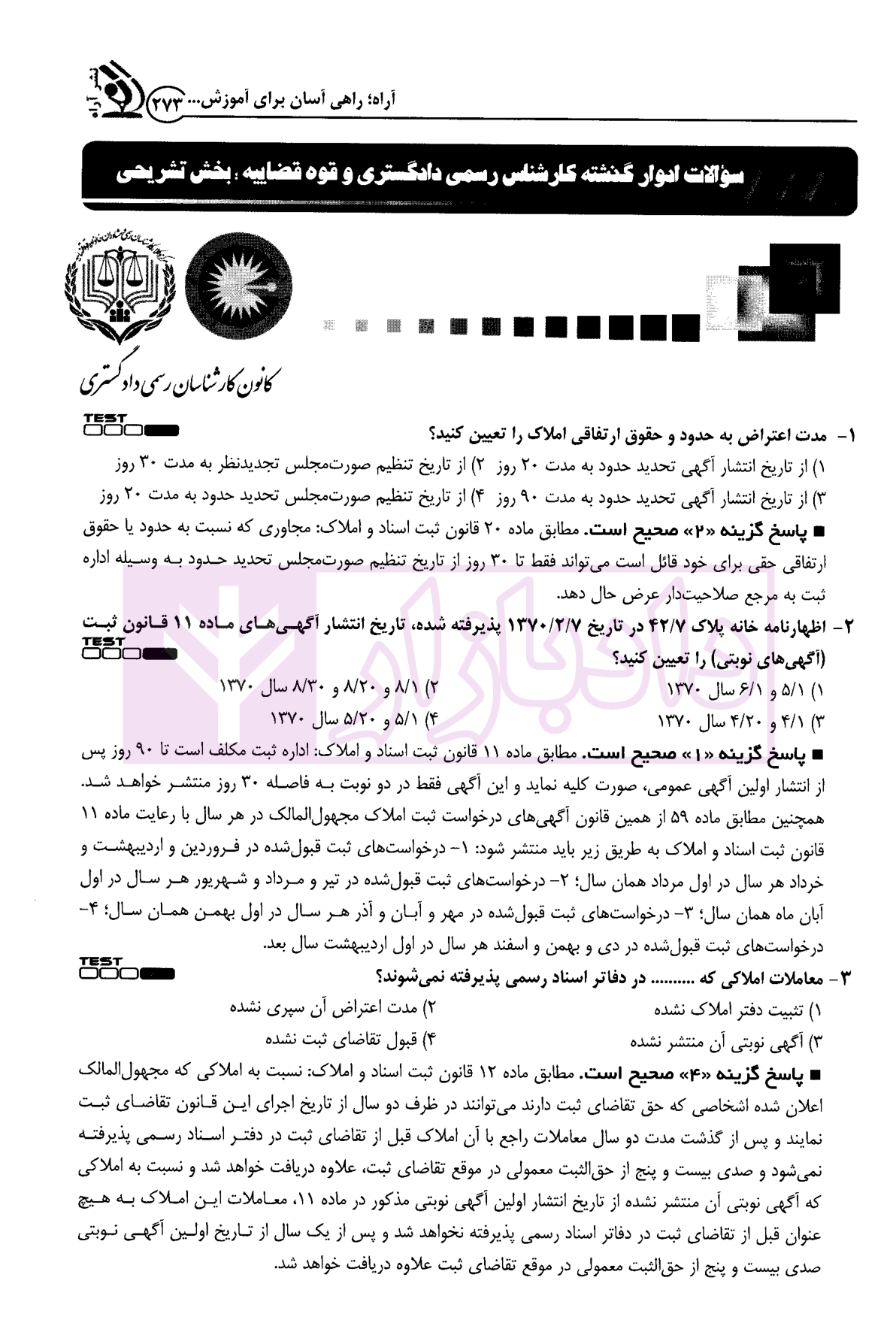 مشخصات و ویژگی کتاب کارشناس رسمی دادگستری کارشناسی رسمی امور ثبتی | گروه آراه