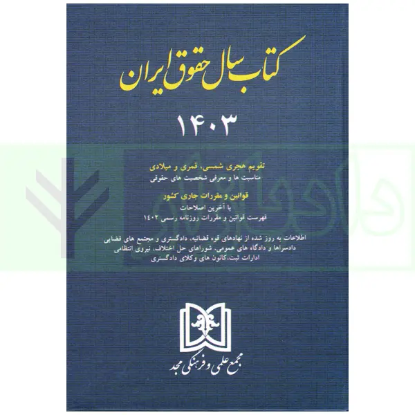 کتاب کتاب سال حقوق ایران 1403 نوشته دکتر سید عباس حسینی نیک تقویم هجری شمسی، قمری و میلادی همراه با قوانین و مقررات جاری کشور با آخرین اصلاحات میباشد.