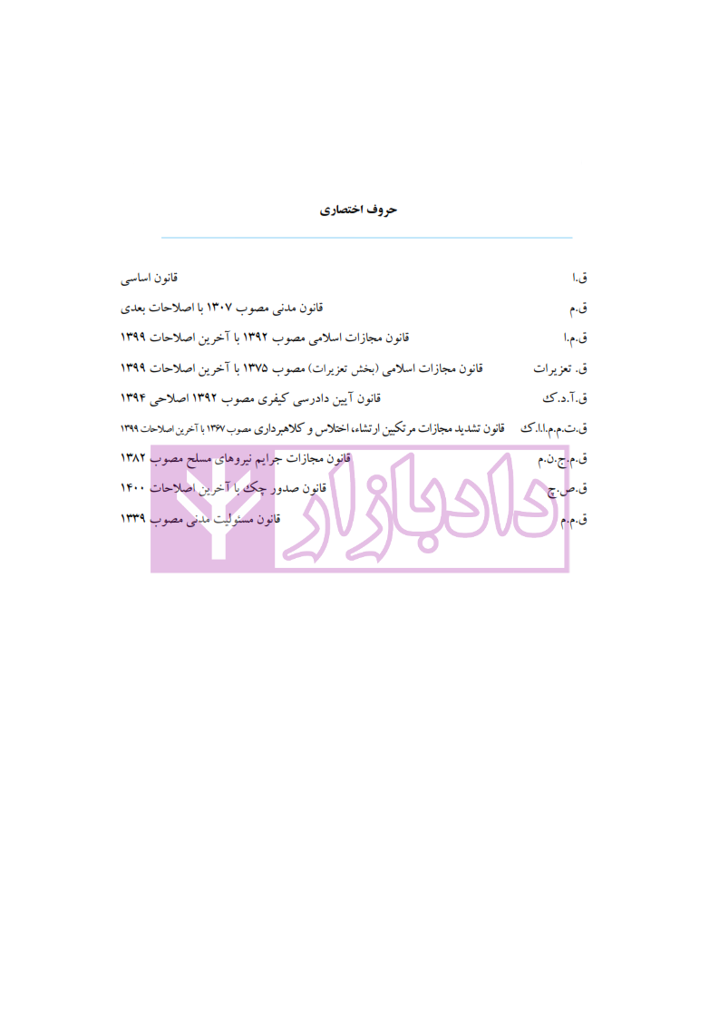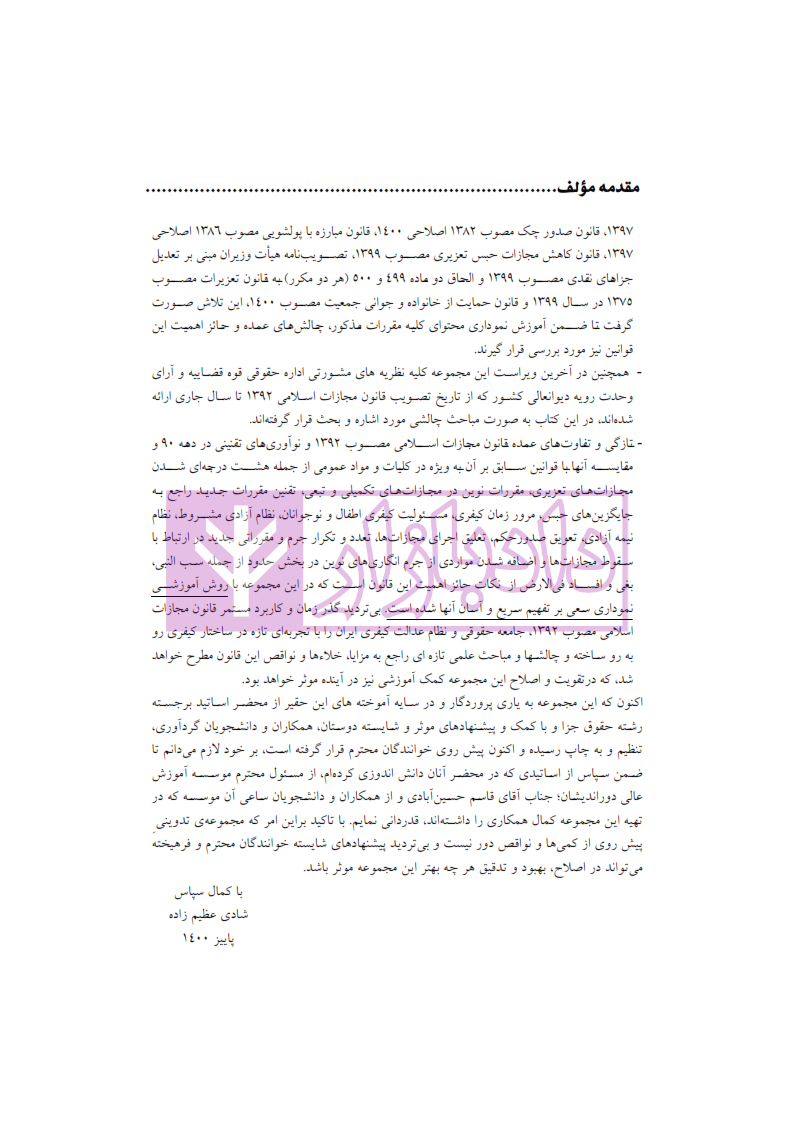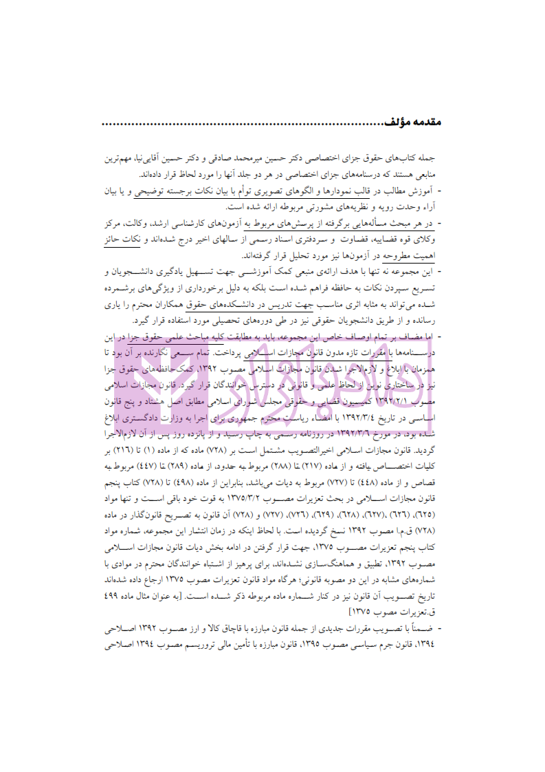 - مطابقت کلیه مباحث علمی حقوق جزا با مقررات تازه مدون قانون مجازات اسلامی