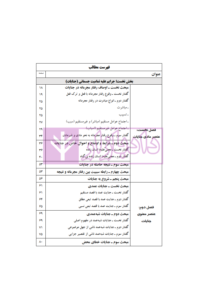 - مطابق با سرفصل های دانشگاهی جرایم علیه تمامیت جسمانی و معنوی اشخاص