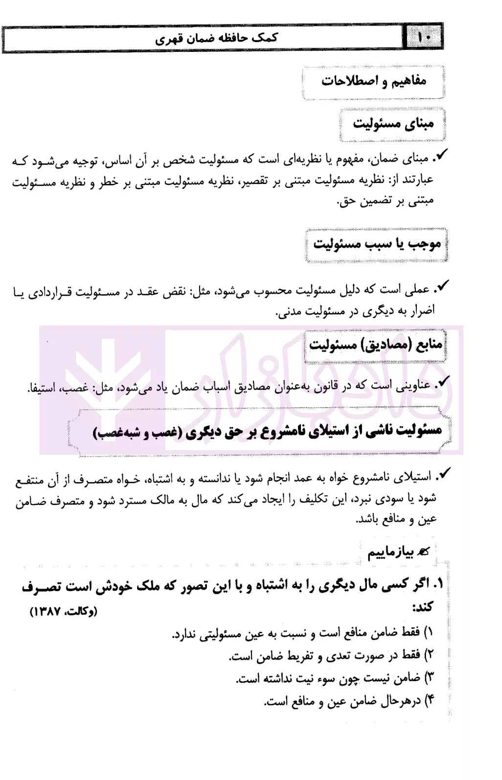 امتیاز و دیدگاه کاربران کمک حافظه حقوق مدنی 4 (ضمان قهری) | دکتر فلاح خاریکی