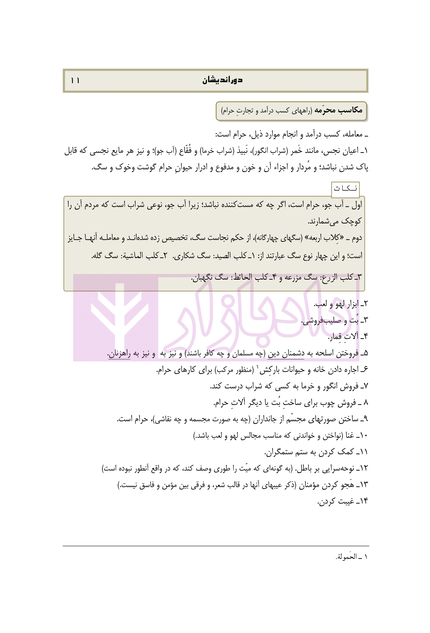 - ارائه واژه شناسی و مفاهیم و نکات مهم هر باب