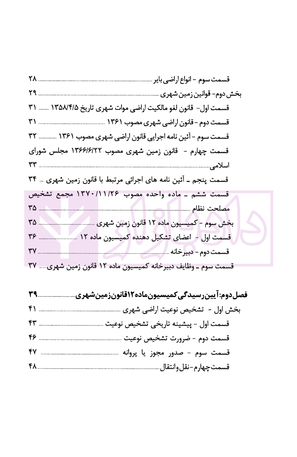 معرفی و فهرست کتاب کمیسیون ماده 12 قانون زمین شهری و اختیار محاکم قضایی در تنفیذ یا رد آرای کمیسیون | دادپویان