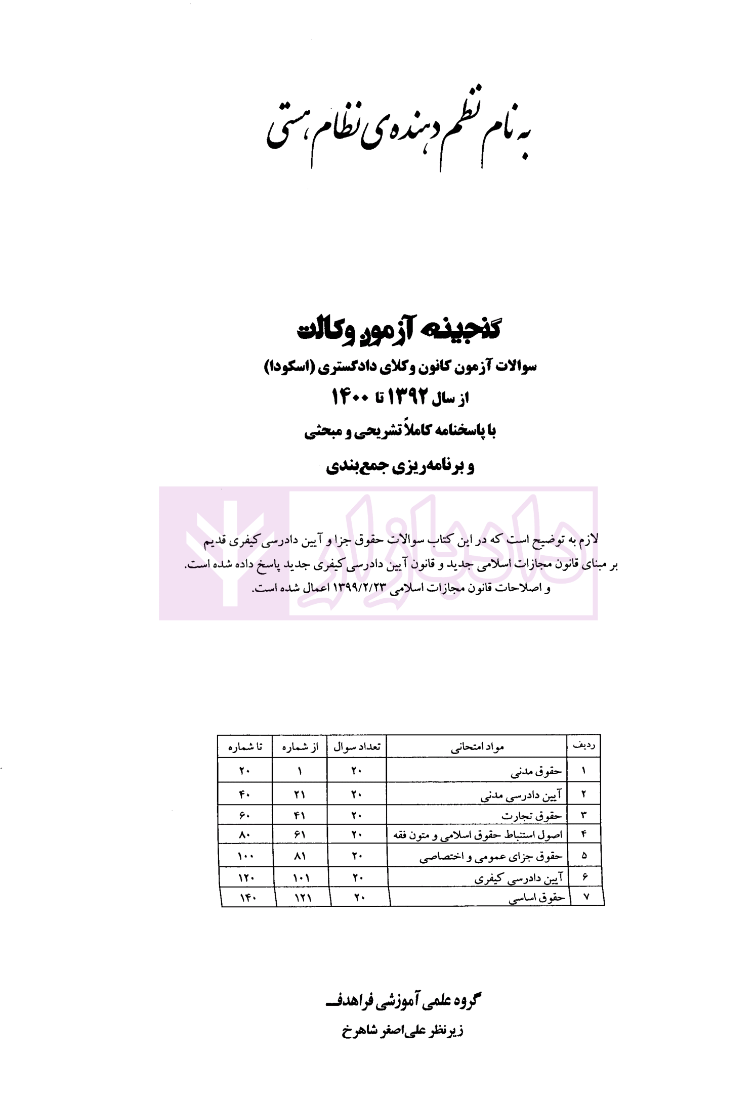 معرفی و فهرست کتاب گنجینه آزمون وکالت (اسکودا سال 1392 تا 1403) | فراهدف