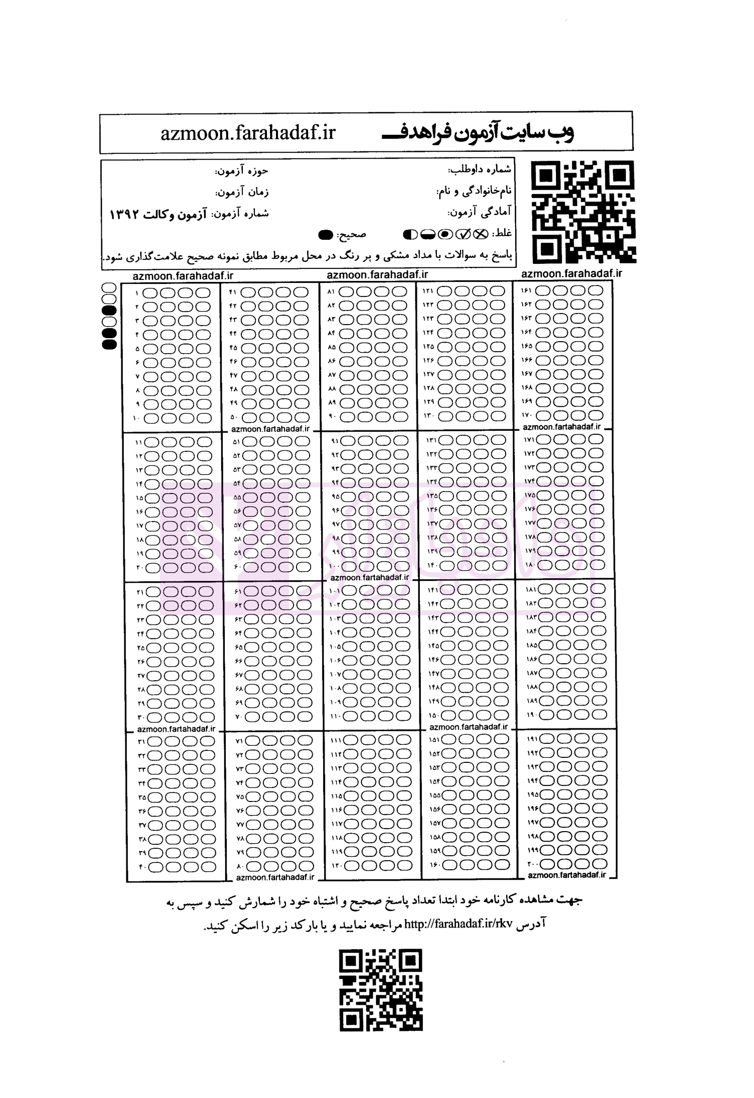 امتیاز و دیدگاه کاربران گنجینه آزمون وکالت (اسکودا سال 1392 تا 1403) | فراهدف