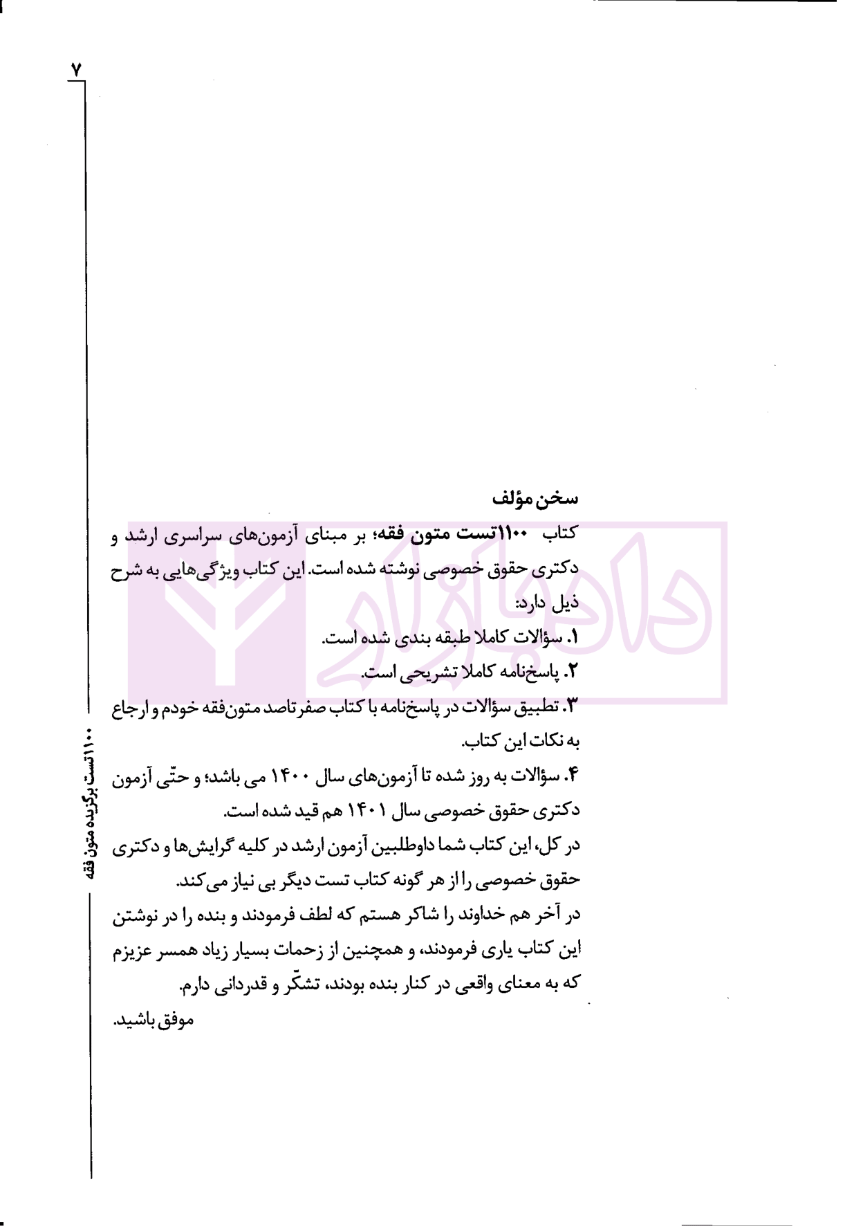 1100 تست متون فقه سینجلی بر مبنای گلچینی از سوالات متون فقه آزمون های سراسری کارشناسی ارشد حقوق (کلیه گرایش ها) و دکتری حقوق خصوصی نوشته شده است. کتاب حاضر ویژه داوطلبان آزمون کارشناسی ارشد در کلیه گرایش ها و دکتری حقوق خصوصی میباشد.