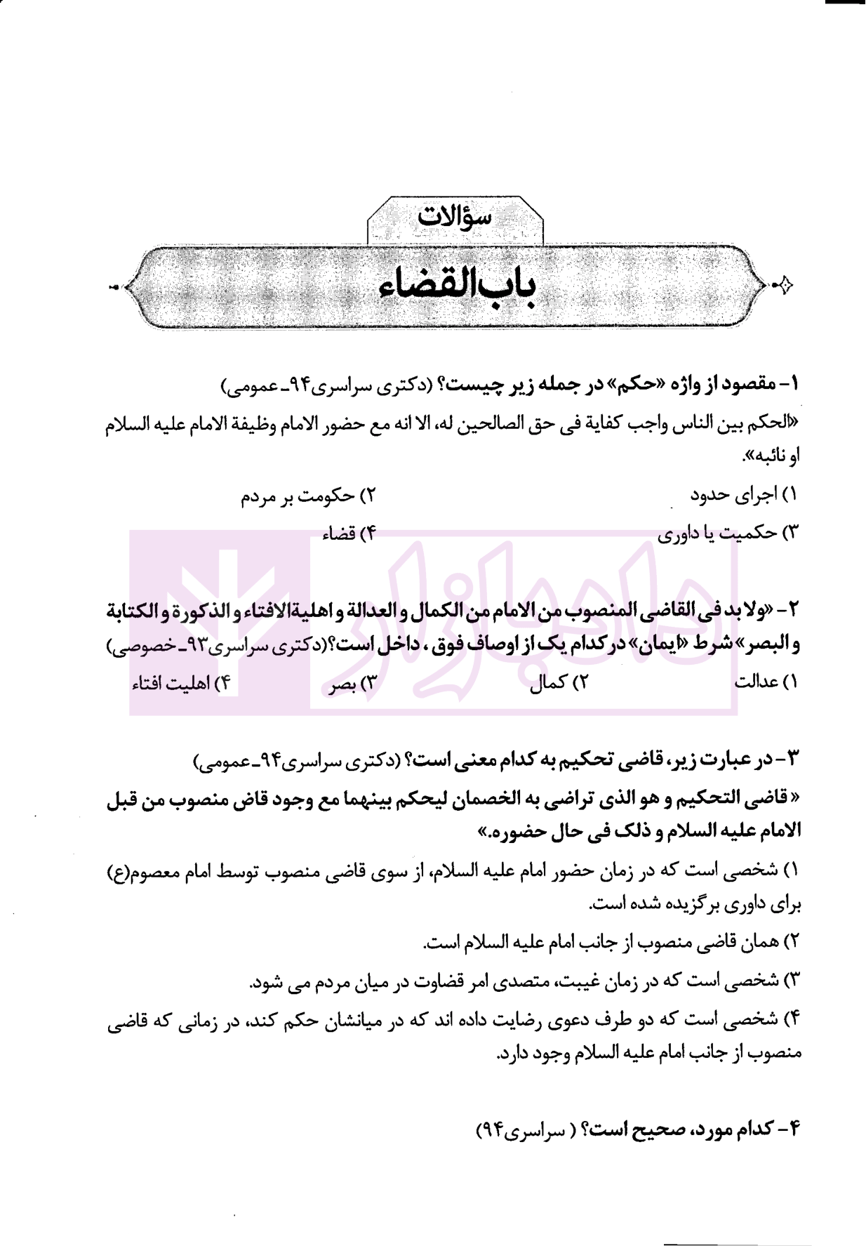 - تطبیق سوالات در پاسخنامه با کتاب صفر تا صد متون فقه سینجلی