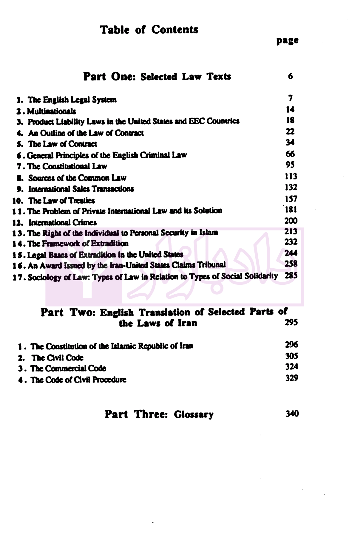 مشخصات و ویژگی کتاب Law texts for Law Students | دکتر افتخار جهرمی